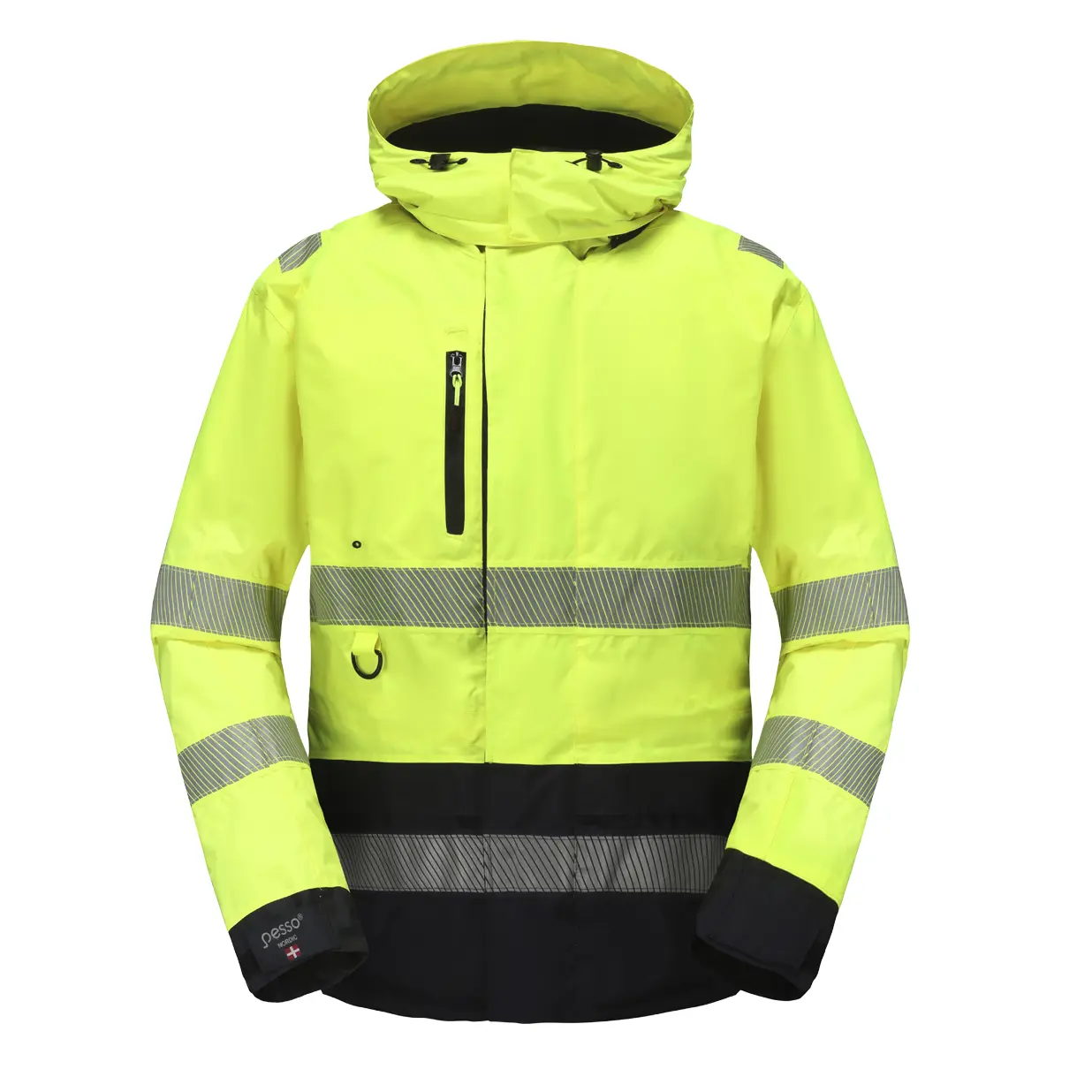 Ūdensnecaurlaidīga, vēja necaurlaidīga, elpojoša, augstas redzamības jaka. Moderns, ērts modelis, kas neierobežo kustības brīvību. Izturīgas dubultvīles.