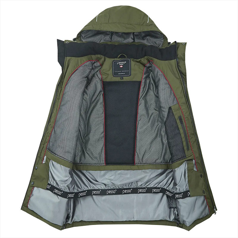 Pesso HELSINKI jaka no mitrumu atgrūdoša, "elpojoša" trīsslāņu materiāla.