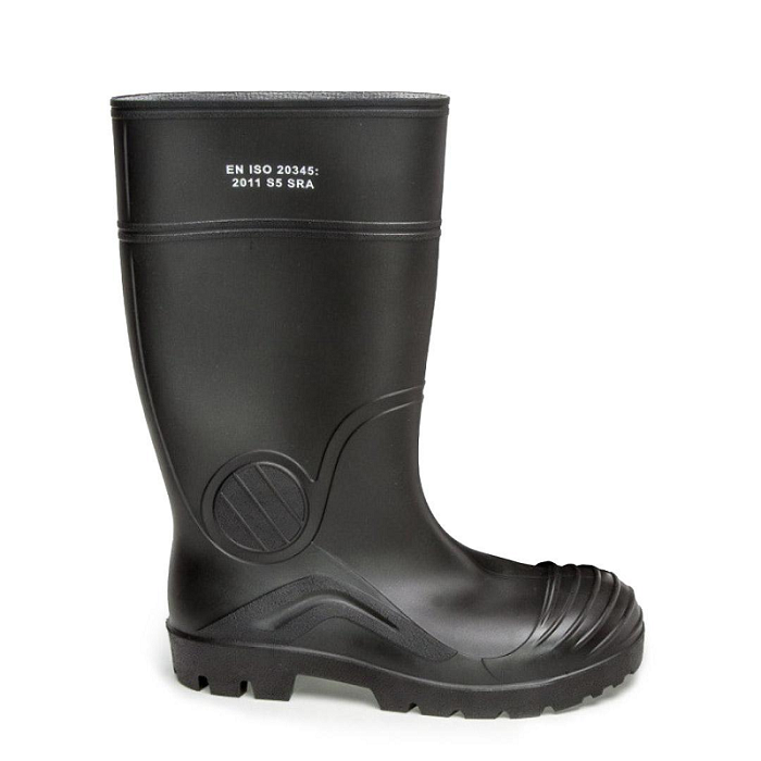 Augstas kvalitātes gumijas zābaki S5 ar purngalu un zoles aizsardzību pret caurduršanu, antistatiski. Šie gumijas zābaki ir neslīdoši, izturīgi pret naftas produktiem (eļļām, taukiem utt.) un zemu ķīmisko vielu koncentrāciju. Tie netek un neuzsūc ūdeni. Tekstila odere,