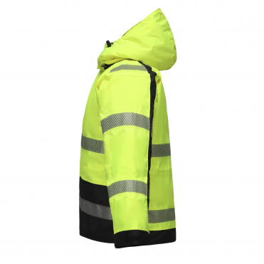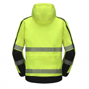 Ūdensnecaurlaidīga, vēja necaurlaidīga, elpojoša, augstas redzamības jaka. Moderns, ērts modelis, kas neierobežo kustības brīvību. Izturīgas dubultvīles.